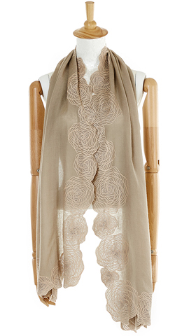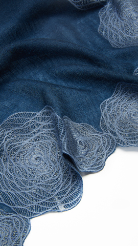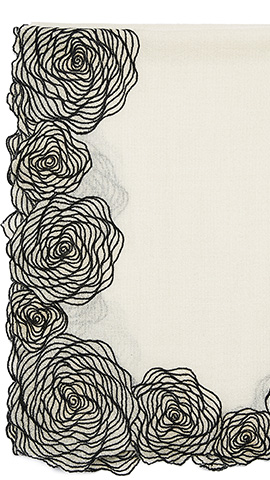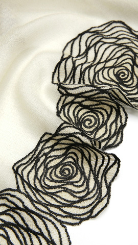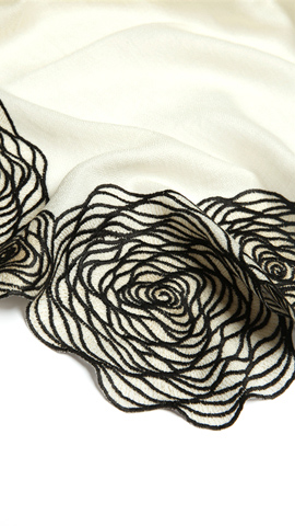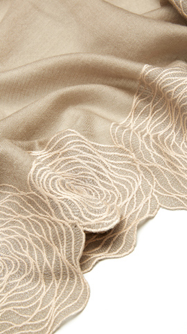 于柔软的羊绒上点缀以玫瑰刺绣,缱绻的线条勾勒出花瓣层叠的立体感,令玫瑰纹理犹如拿铁拉花般优雅盛绽。